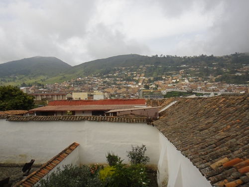 Le ciel est couvert et les nuages touchent presque la ville, la température s’est radoucie. Elle revient tranquilos à son hôtel qui donne sur l’immense place de la petite ville. Pampelona est une ancienne ville coloniale, le dernier tremblement de terre (oui dans toute la Cordillera Andina ça tremble souvent) n’a détruit que partiellement la ville, les anciennes maisons coloniales cotoient ainsi de petits immeubles plus modernes. Elle va directement soigner son vélo qui est garé dans le patio un peu sinistre de l’hôtel dans le quel donne sa chambre, pas de nettoyage intempestif mais nettoyage doux au chiffon, partout, partout et regraissage là où il faut et reréglage des freins, là ça va nickel chrome, mais elle craint qu’une fois le vélo chargé et la pluie ça ne recommence. A suivre… Ca lui prend quand même une heure et demi, puis elle va à la banque, elle ne sait pas quand elle pourra à nouveau retirer de l’argent et elle veut plus se priver de manger ce qu’elle a envie. Elle a fait son itinéraire, s’est renseignée, va se perdre dans de petites routes de montagne… A suivre… Elle ne sait pas encire ce que c’est que les petites routes de montagne en Colombie… Aux dire de la population elle devrait trouver où dormir, où se restaurer… C’est vrai que la Colombie a l’ait beaucoup plus moderne que le Venezuela, hôtels, internet et magasins abondent (dans les villes), mais si il n’y a pas de village ? Elle verra, le premier village est à 30 ou 40 km, très très froid lui a dit la personne qui s’occupe d’une entreprise de transport (un bon truc pour les cyclo : aller chercher les renseignements chez les spécialistes). Comme à Cucuta le distributeur automatique ne lui avait délivré aucun pesos, elle demande de l’aide, là tout se passe bien, même système qu’en France, sauf que la carte on la met et on la retire aussitôt, retour à l’hôtel qui est pas loin, et voilà notre abuela cyclo que tiene una laguna en el mense (oué c’est comme ça qu’on dit avoir la cervelle comme une passoire, littéralement un lac dans le cerveau…) libre comme le vent. elle a décidé de visiter la ville et d’aller voir le musée d’art moderne où sont exposées les oeuvres d’un peintre impressionniste natif de la ville : Ramirez Villamiraz.