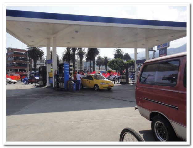 Ce matin comme prévu je vais à la station essence nettoyer mon vélo, d’abord à l’eau puis à l’essence normale vu que je n’ai pas trouvé de kérosène ou essence blanche, il faut dire que je n’ai pas trop cherché vu l’heure tardive et l’épuisement dans lequel je suis arrivée à Ibarra hier. Je me dis que si j’étais bien je resterai, mais je ne suis pas bien, l’hôtel est très pourave, il faut des échasses pour aller aux toilettes sous peine de se noyer, il est sale, bref pourave.
