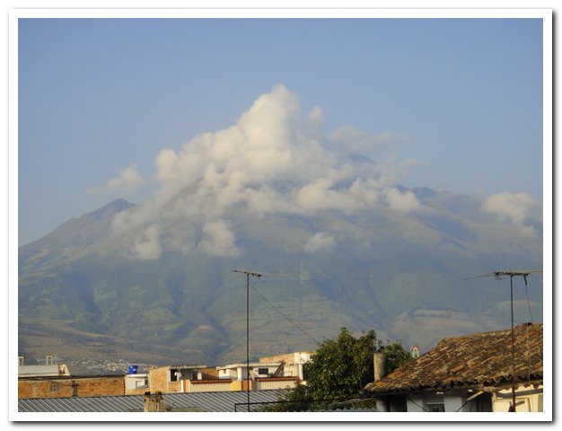 Je repars en pensant prendre non pas l’eau mais l’orage, ça tonne dur, je fonce dessus, je n’aime pas cela… Je demande où il y a un hôtel, on me dit qu’il n’y en a pas mais que Otavalo est à 3km, en fait il y a deux hôtels à coté, mais c’est vrai qu’Otavalo est juste là, j’échappe à l’orage. Otavalo me plait, c’est dimanche tout est fermé, pas un bruit, personne… Je cherche soigneusement un hôtel car je me décide à faire une pause…