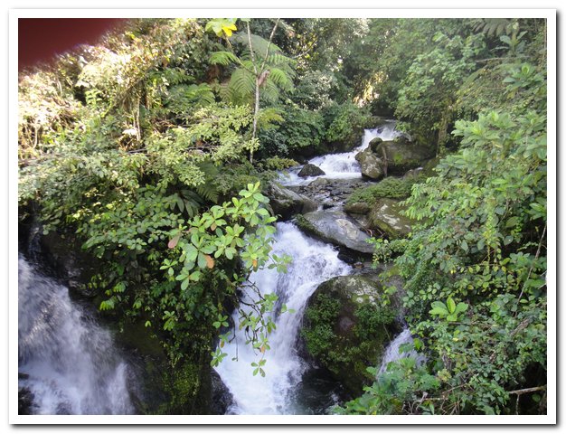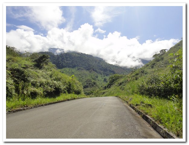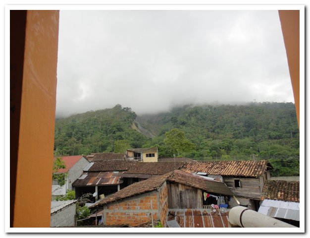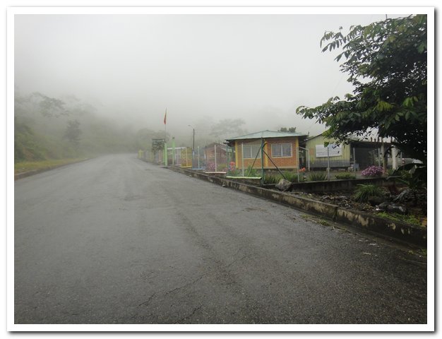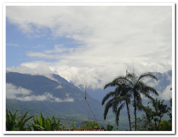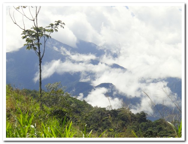 les paysages à tomber par terre, je vais croiser trois voitures, deux me disent qu’on ne peut passer, que la route est coupée, un rajoute qu’il faut passer par Limon (lequel Limon n’est sur aucune de mes deux cartes), que la route est plus large, qu’ici ce n’est pas une route à bicyclettes, déjà que l’hôtelier m’avait dit de prendre le bus… je dis que je vais voir, que moi peut-être je vais passer. Le troisième véhicule met son doigt sur sa tempe et me fait signe que je suis folle… Au Vénézuela j’étais une star, en Colombie on me respectait, ici en Equateur on me prend pour une folle…