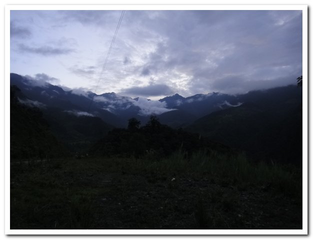 Le morceau de poulet se réduit à un os d’aile que je ronge mais il y a un demi-avocat du jardin, ça compense. Le repas coûte 3 dollars, je paie avec un billet de 10 dollars, elle n’a pas la monnaie, je vais attendre montre en mains 50 minutes ma monnaie, en temps normal je serai partie, là je suis en période de restriction budgétaire donc j’attends. Je lui propose de me rendre mon billet et de me courir après avec le vélo moteur vu que je vais très lentement et qu’il ne lui faudra que quelques minutes pour me rejoindre, elle refuse et refuse aussi de me rendre mon billet. Quand je dis que je vais devoir rouler la nuit, elle me répond que ce n’est pas grave que la route est sûre, je voudrais la voir pédaler sur une route qui monte avec deux mille mètres d’à pic à droite en pleine nuit. Un homme se mêle à la conversation et là on me raconte du vraiment n’importe quoi, que à 10km, puis 50 il y a une ville avec un hôtel, que la route monte et descend ( pour rejoindre cette ville de trois maisons sans hôtel il y a quand même 1500 mètres de dénivelée positif…).