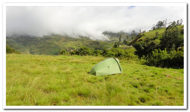 Bivouac à la sortie d’un hameau sur l’E35 – Bivouac dans un hameau, Nunurco sur un col venté , pluvieux et à près de 3000 mètres.