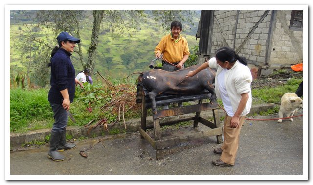 - Après avoir fait connaissance avec el « Gobernacion », la police, j’investis l’état civil, les autorités sanitaires, moi je veux savoir si le chien est vacciné… On veut m’envoyer voir le médecin, je dis que ce n’est pas la peine, que je suis médecin et que je me suis soignée, moi je veux savoir si il y a un risque de rage, alors la réponse est la même, pas de certificat, pas de registre, le camion passe tous les ans et le chien est probablement vacciné (oué probablement mais pas sûr…), avant il y a vait la rage mais plus maintenant. Habituellement ils mettent le chien et l’humain en observation trois jours, oué, la rage l’incubation peut durer des années et l’issue est fatale une fois les symptomes déclenchés, jusqu’à présent une seule personne a survécu, et bin dis donc. Tout le monde me rassure, n’empêche ma cuisse elle est pas belle…