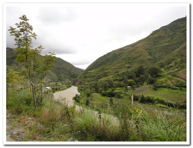 - En chemin, j’ai réfuté un premier resto, il était trop tôt, si je ne m’étais pas arrêtée au deuxième c’était ceinture, il n’y en aura pas d’autre. ce pays n’offre vraiment pas beaucoup de services, à étudier sur le plan socio-politique, pourquoi certains pays ont développé à outrance le petit commerce et d’autres pas ? Apparemment les équatoriens qui vivent du commerce ( je ne parle pas de indigènes qui vendent leurs légumes) en vivent bien… Ouf aussi je trouve une tienda pour acheter de l’eau tout simplement, je pensais vraiment qu’en me rapprochant de Cuenca j’allais trouver tout le nécessaire. N’empêche au resto que j’ai réfuté j’ai acheté deux avocats et des gens m’ont fait goûter un fruit, je crois que c’est le meilleur fruit que je connaissa, ça ressemble à un artichaud pas mûr, la chair est blanche, très sucrée et juteuse, il y a plusieurs gros noyaux dedans, le problème, il faut le manger sur place car c’est très gros et rapport poid calories pas top…