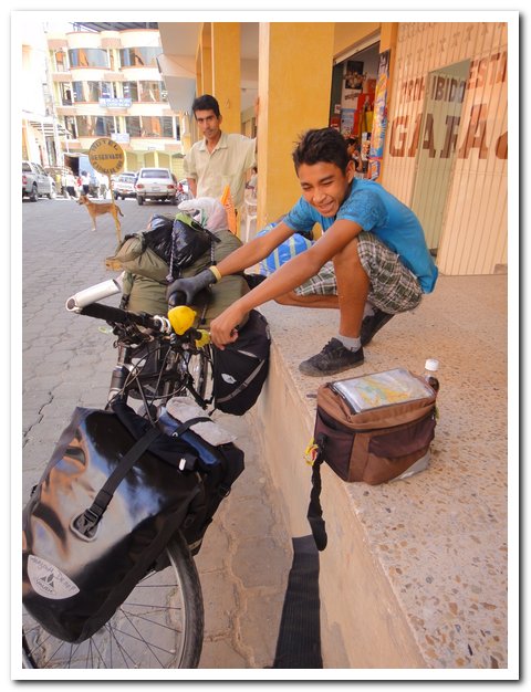 A 7 heures je suis prête, hier j’ai bouclé mes sacoches, mais avant de partir je veux savoir si ma carte bancaire est arrivée. On m’a dit que le courrier ouvrait à 8 heures, du coup je refais mes sacoches en en consacrant une à ce que je veux emmener avec moi pour aller a Cuenca si ma carte est là, histoire de ne pas rater LE bus de la journée. Puis va commencer une longue quête pour savoir si ma carte était arrivée ou pas. Hier à l’hôtel c’est la petite (et gentille mais pas douée) colombienne qui m’a répondu, j’ai perdu l’habitude de l’accent colombien et ne comprenait rien à ce qu’elle me disait, à la question « hay ou no hay » « tiene o no tiene », soit elle est là ou elle est pas là, vous l’avez ou vous ne l’avez ou vous ne l’avez pas la notification, répondez-moi juste par oui ou par non, et bien la réponse est des explications oiseuses auxquelles je ne comprends rien, finalement je craque, je demande l’aide de la vendeuse de minutes de téléphone qui se fait prier et finit par accéder à ma demande et pendant ce temps les minutes défilent et mes précieux petits dollars s’envolent et chaque dollar qui s’envole c’est un grain de riz en moins, une goutte d’eau potable en moins et une heure de sommeil en toute sécurité en moins, une minute d’internet en moins, et aussi l’impossibilité de faire ce que j’avais prévu, l’impossibilité de racheter un pneu, l’impossibilité d’aller chez le dentiste, l’impossibilité d’acheter les médicaments dont j’ai besoin, l’impossibilité toute bête de racheter de la crème solaire ou du répulsif pour les moustiques, l’impossibilité de téléphoner, voilà à quoi sert l’argent… Alors la petite colombienne elle finit par cracher le morceau, non ils n’ont pas la notification de ma carte, et elle donne deux numéros de téléphone où appeler, et voilà encore les minutes et les dollars qui dégringolent et la réponse que ils savent pas et que il me faut le numéro du courrier… Je lance un appel de détresse sur le net et je cherche a Macara la poste. Et bien dans cette ville de moins de 1km2 il me faudra bien une heure pour trouver, entre les ça n’existe pas ici et qu’est-ce que c’est que ça El correo del Ecuador et qu’on veut m’envoyer sur internet et que on m’envoie n’importe où et que je finis par trouver un tout petit bureau caché au fin fond de la petite ville et que la seule employée ne sait pas ce que c’est qu’un recommandé et que des timbres elle ne sait pas ce que c’est et que pour qu’elle téléphone elle à Cuenca j’ai du faire un vrai forcing, etj e finis par savoir que ma carte n’est pas arrivée, alors vite je me sauve, je retourne à l’hôtel et là nouveau choc ils sont en train de débarrasser ma chambre, mes sacoches étaient prêtes, une pas fermée, je râle quand même je dis que je n’étais pas partie, que ça ne se fait pas, ils me disent qu’ils ont fait ça pour s’avancer. Je n’ai pas le courage de revérifier que j’ai bien tout, je suis très en colère, surtout que avant de partir je vérifie que je n’oublie rien, partout derrière et sous le lit, ce qui au passage me permet de mesurer la couche de poussière et de découvrir des détritus laissés par d’autres, je me sauve en priant le ciel que l’on ne m’est rien dérobé… Le petit jeune qui m’aide à porter les affaires me demande en échange mon appareil photo, attends il rêve… Je lui demande si il peut vérifier le serrage de ma roue (hier j’ai inversé les pneus avant et arrière pour cause d’usure et je sais que ne n’ai pas de force, donc pour le serrage des roues c’est léger), là c’est moi qui rêve, vite je reprends les choses en main, ouf j’ai commencé par la roue avant (au passage tite Françoise t’as pas encore compris qu’il faut laisser personne toucher à ton vélo !)
