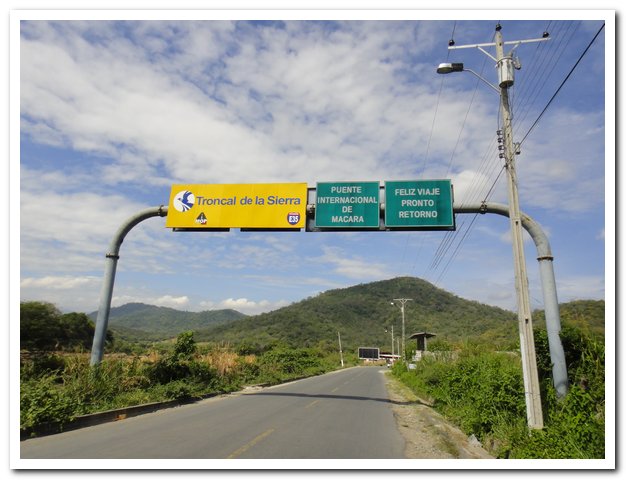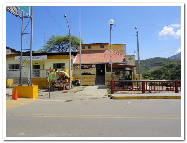 L’avantage de passer par un endroit désert c’est qu’on ne fait pas la queue, l’inconvénient c’est qu’il faut faire attention et vérifier que tout est en ordre et même chercher où il faut aller, on peut passer la frontière sans faire les papiers mais ensuite bonjour les dégâts, j’ai rencontré à Quito un français qui a passé la frontière colombo-équatorienne le jour des élections, il n’y avait personne à l’émigration, il est passé quand même, pas de chance il a été contrôlé, peut-être est-il toujours à Quito en train d’attendre sa régularisation… Donc je fais très attention, je fais ma sortie, je me fais confirmer que pas de problème pour rerentrer et ressortir (si des fois ma carte bancaire arrive un jour  à Cuenca) Je m’informe où se fait l’entrée au Pérou, c’est de l’autre coté du pont, avant je trouve un œil pour me faire la photo d’usage (réclamée à cors et à cri par mon correspondant et ami du Dauphiné Libéré)