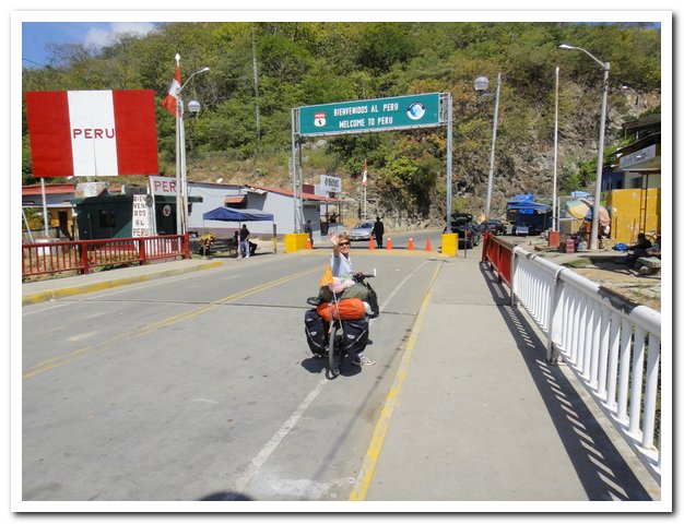 Je recommence mon laïus, pas de problème pour sortir et rerentrer, non, j’ai la bonne idée de vérifier mon tampon sur mon passeport et je vois qu’il a écrit 60 jours, je ne craque pas, je garde mon calme, je dis que je ne comprends pas, que la durée légale est de 90 jours, je rajoute que je suis en bicyclette et que je ne peux traverser le Pérou en 2 mois, je ne précise pas et en plus à mon âge mais je l’ai pensé si fort qu’il a du l’entendre… Il me dit que comme je vais repasser, je lui explique que ma carte risque de ne jamais arriver donc j’en ferai refaire une au Perou, appel du supérieur, on met un coup de blanc sur les 60 jours et on réécrit 90 dessus, je demande si ils ne peuvent pas remettre un tampon, si ça va aller comme ça, bon ils l’écrivent en toutes lettres et bin dites donc, ça commence bien…