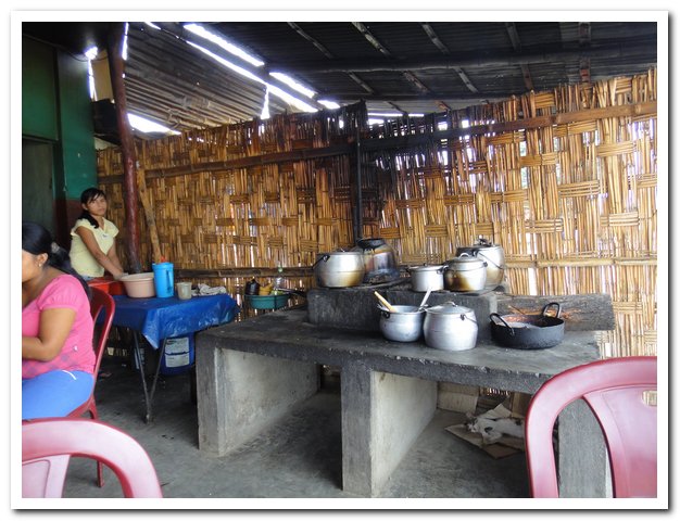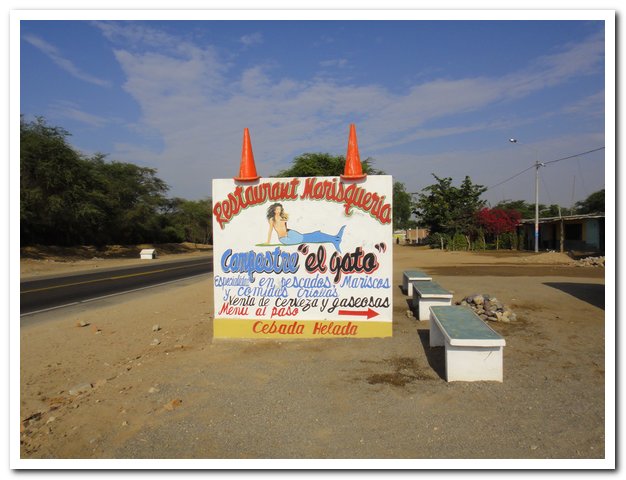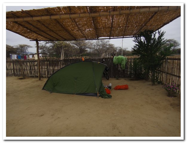 Je dépasse un village extrêmement pauvre, les murs sont en paille, les toits en toile de sac. Je me demande un peu où je vais pouvoir dormir… Villages et maisons sont rares, Seuls les voitures et camions sont revenus. Je suis fatiguée, je n’ai plus rien à manger… Dans un tout petit village un restaurant.