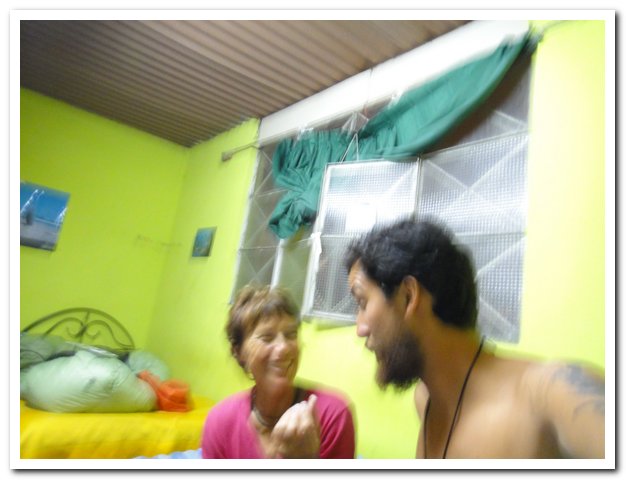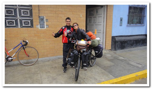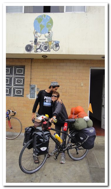 A la Casa de Ciclista les arrivés de la veille qui ont fait leur journée cool Chan Chan plage sont étonnés de nous voir de retour, mais d’autres aussi ont fait un faux départ, les brésiliens carbone, partis faire du stop car ils avaient rendez-vous avec une nana et étaient en retard sur leur itinéraire (et un rendez-vous avec une nana ça se manque pas) sont revenus a la casa car personne ne les avaient pris (pourtant depuis le camion plein de charbons ils s’étaient lavés), ils ont pris un bus à six heures du soir. Quand on a un temps limité car TOUS on met plus de temps que prévu seule solution le stop ou le bus, moi j’ai pas de temps limité, juste je vais me reprendre une deuxième saison des pluies, un troisième voire quatrième hiver, mais le voyage c’est ça, je ne suis pas la seule, en général les cyclos rencontrés qui traversent toute l’Amérique du Sud se sont donnés deux ans, ou alors ils font certaines parties en bus, après c’est une affaire de choix personnel…