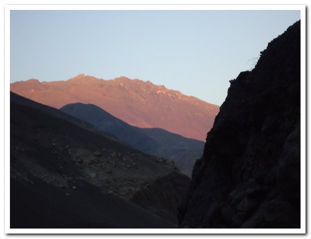 • Particularités de la journée : rencontre de Daniel et Anne, piste qui remonte le canyon del Pato, impressionnant, je me fais piéger par la nuit, je dors dans le charbon.