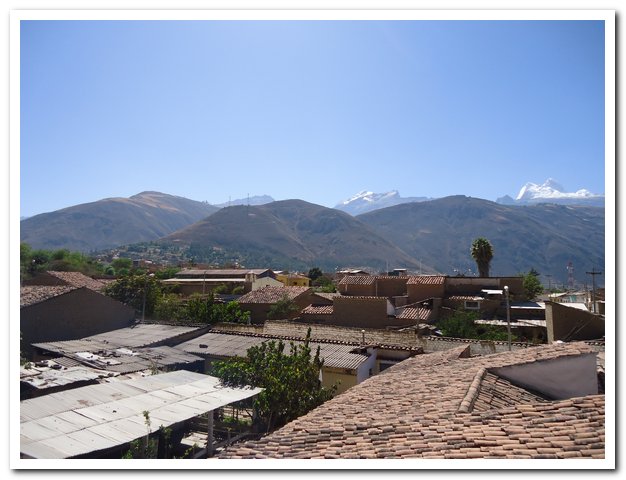 La route monte. Il me faudra franchir quelques épingles, une avec le vent de face, une avec le vent dans le dos et ça recommence… Je ne pédale pas trop mal… La Cordillère blanche commence à se faire de plus en plus présente