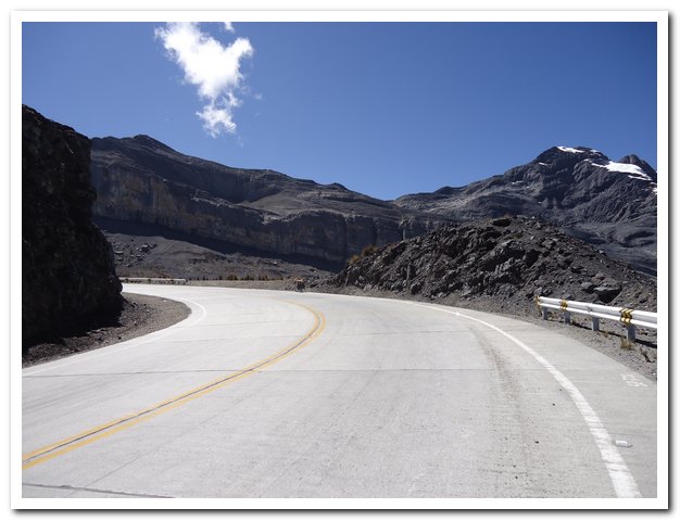 La route qui est plus lisse que les derniers jours fait d’abord de grands lacet, puis de grandes lignes droite montantes (j’ai horreur), puis à nouveau des lacets puis à nouveau une grande ligne droite montante, jambes et vélo tournent bien et je n’ai plus cette fatigue d’hier et avant-hier lié à une gripette.