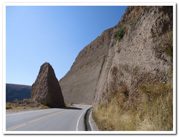 Après un réveil très matinal et les aurevoir, je pars, traverse le village sous mille yeux, emprunte le pont en poussant mon vélo, reprends la route, je suis le rio, ça descend, quelques montées pour bien transpirer et avoir ensuite chaud. Je trace un max, les faux-plats descendants et les faux-plats montants, j’adore, enfin mes muscles adorent, y a peut-être aussi la quantité de globules rouges amoncelée qui y est pour quelque chose, et puis j’aime ça tracer. J’ai beau tracer, je vois que je suis dans du beau…Et en plus il fait grand beau…