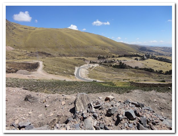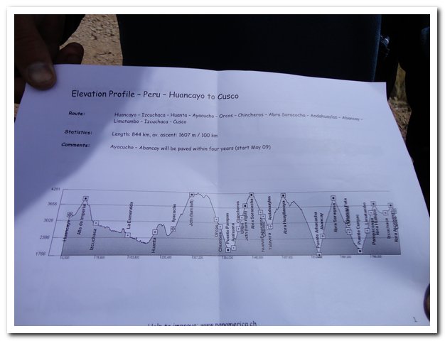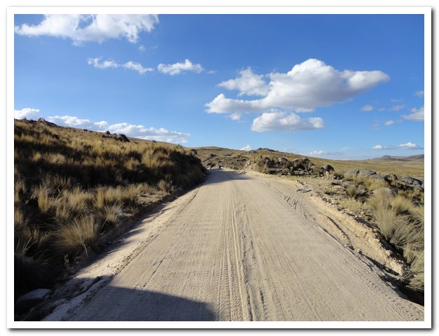 Christophe, pas possible, je le croyais à un jour devant moi, il était à un jour derrière moi… Christophe c’est le suisse en vélo couché que j’ai déjà rencontré plusieurs fois, la première fois après la descente de Pallasca, puis il m’a doublé dans le canyon del Pato, je l’ai rattrapé à la sortie. Il est allé faire un tour dans la Selva, je suis aller faire un tour dans la Cordillera Blanca (ascension de l’Ishinca pour ceux qui ne suivent qu’à moitié ou pas du tout…), puis dans l’altiplano, il m’a doublé au début de la route diabolique et le voilà derrière moi, enfin bientôt devant et il va me faire mener un train d’enfer…