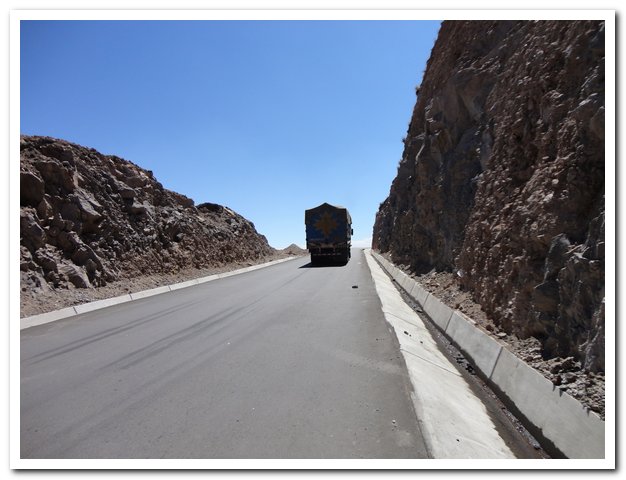 Je vais d’ailleurs rencontrer un chasse-sable, oui rigolez pas ça existe, c’est exactement comme nos chasse-neige, sauf que ça chasse le sable. Christophe chute et m’évite la chute, un virage où on dérape, ça vous ramène à l’intérieur du virage et là gros paquet de sable, chute inévitable. De voir Christophe tomber me permet d’anticiper et de ne pas tomber, très juste… Je ne sais pas ce que m’a dit exactement Christophe si il allait changer de pneus ou si il en avait acheté à Ayacucho, nous exprimons tantôt en français, tantôt en espagnol, Christophe étant suisse allemand et ne maitrisant pas le français. En attendant, son vélo équipé du même type de pneus que les miens dérape autant que moi mais lui a un bouton siège éjectable, oui il a la technique quand il tombe pour s’éjecter sans se faire mal, c’est plus facile avec un vélo couché qu’un vélo normal.
