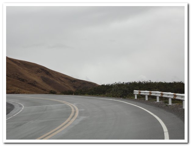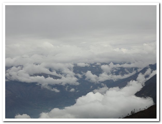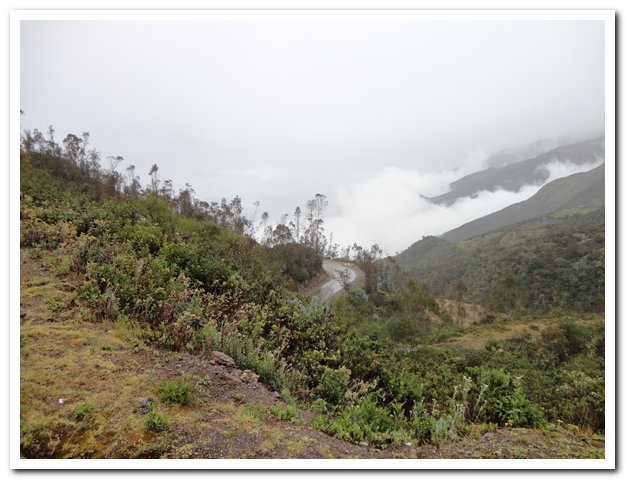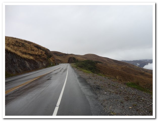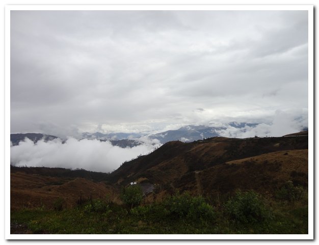 Arrivé au col je me déshabille, me change, je suis trempée et si j’entame la descente dans cet état, je vais me paralyser complètement. J’ai oublié de parler du paysage superbe comme d’hab, j’adore monter et descendre et voir la végétation changer, et puis parfois les nuages laissent entrevoir des splendeurs…