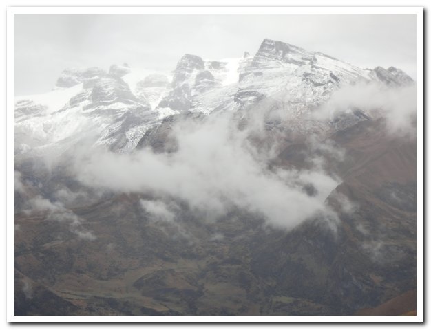 Dés le départ le temps n’est pas au beau… Il a plu toute la nuit et la neige est descendue très bas (enfin relativement, à 4000 mètres…)