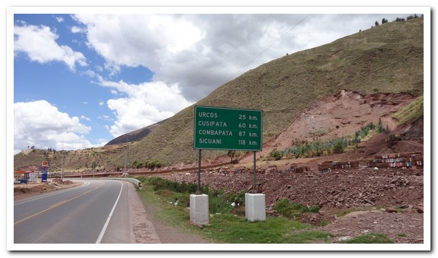 Il me faudra presque 15 km pour sortir de Cusco et sa banlieue, comme d’habitude les minibus me font des queues de poisson, les bus me rasent et les