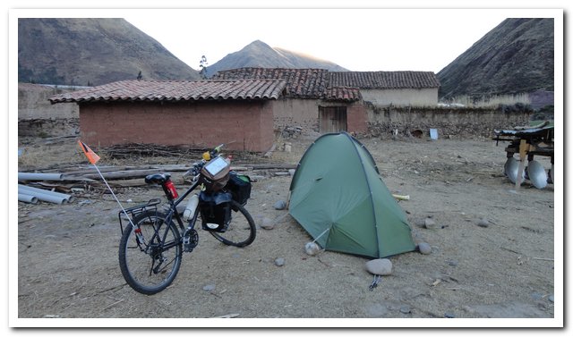 • Particularités de la journée : du bon goudron, je roule bien, ça monte et ça descend, c’est beau, j’ai un petit pincement au cœur en quittant Cusco… Je vais bivouaquer à coté d’une ferme.