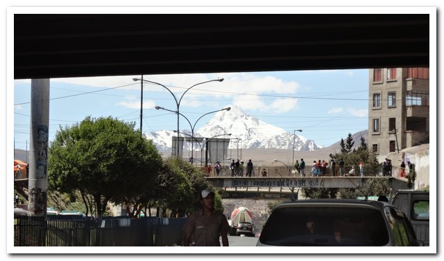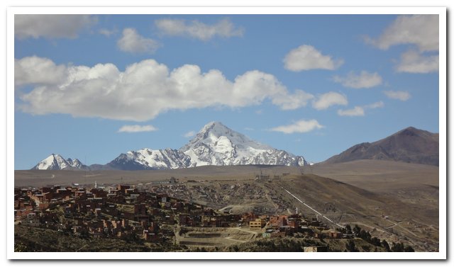 Cette ville semble magique. Ce chapeau tout blanc je pense que c’est l’Illimani 6460m et c’est un volcan. Il y a aussi le Mururata 5865m que l’on voit depuis La Paz . Bon enfin tu as des volcans très très haut partout autour de toi. Lequel tu choisis ?