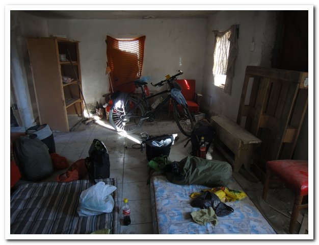 Je cherche un endroit pour bivouaquer, c’est-à-dire sans cailloux, plat, sans épines, trois fois je change d’idée et enfin trouve mon bonheur. Je nettoie mon vélo à sec et graisse avec grande parcimonie. Je peste contre « l’intervention » de La Paz qui a modifié le réglage de ma selle, je bénis Lucho qui m’a donné un tuyau qui me sert de bras de levier pour tous ces