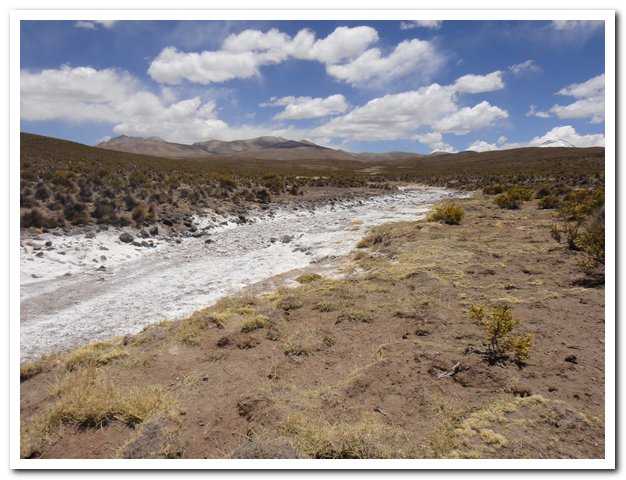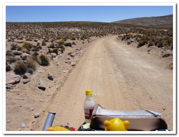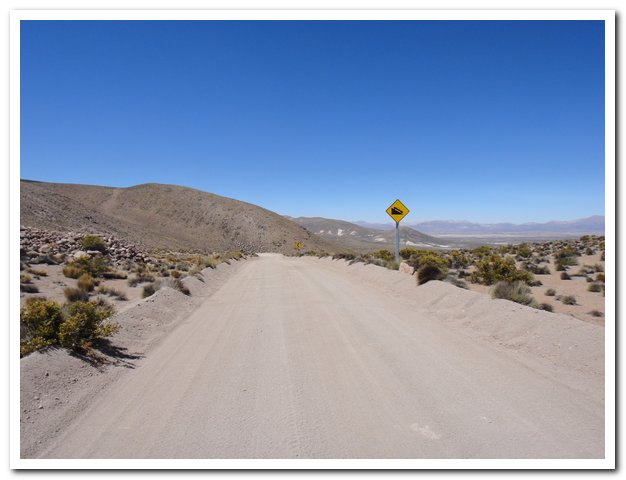 Je rencontre une camionnette de « déminage humanitaire », oh là là ça se complique, j’espère qu’ils ont bien fait leur travail… Je les arrête, je suis sur la bonne route ? Sur la route d’Enzo ils ne savent pas, sur la route de Guallatire oui. Je vais encore rencontrer un 4X4 et un camion qui chacun me demandera si je n’ai besoin de rien.