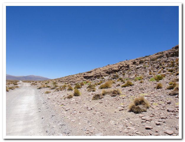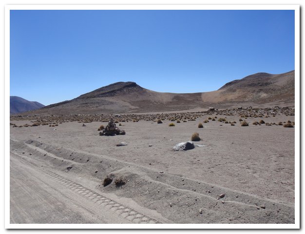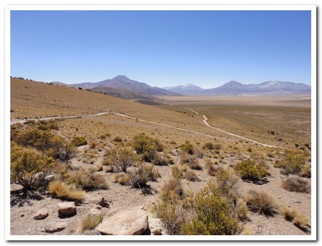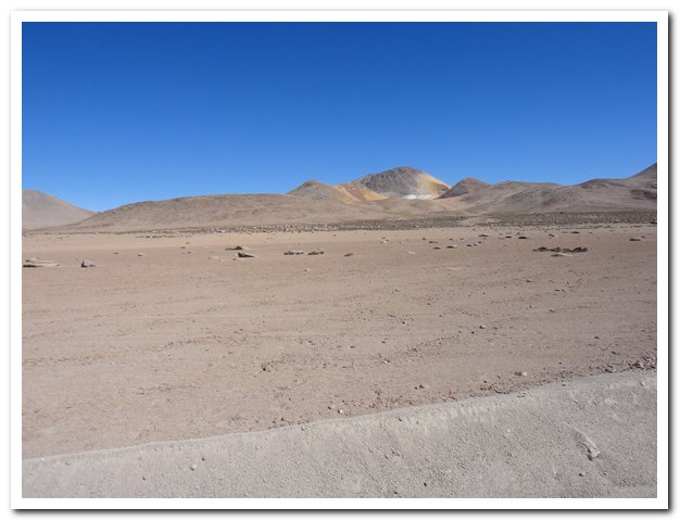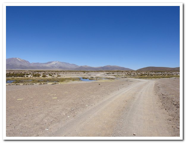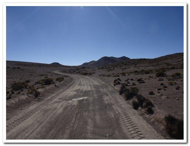 Je descends bien, prudemment mais bien. Puis sur le plat je fatigue… Tôle ondulée et sable alternent, ce n’est pas mon truc… Le seul kilomètre vraiment roulable je suce ma sucette et donc pousse… Je traverse deux déserts qui me semblent être d’anciens lacs.
