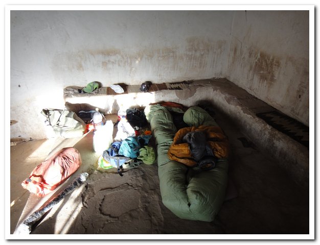 Bivouac près du filet d’eau non douce – Salle des fêtes dans un hameau dans la montagne au-dessus du salar de Coïpassa