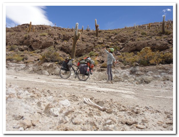 Je mange un peu dubitativement, un homme s’en va tchakrer (travailler aux champs), je lui cours après et lui montre ma carte pour essayer de comprendre où je suis et où je vais, moi j’aurais bien été à gauche, lui me dit que c’est à droite, j’essaie de lui faire dire le contraire (des fois ça marche, mais c’est faux…) et je finis par céder « après tout c’est votre pays, vous le connaissez mieux que moi » et puis le salar d’Uyuni il est là, oui j’ai vu.