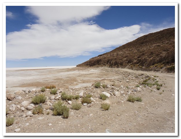 Je demande comment est la route, l’homme commence à me dire que ça monte, attends je suis au niveau du salar d’Uyuni, Llica est au bord du salar d’Uyuni, il ne va pas me faire encore franchir une montagne. Finalement il me dira que en vélo il vaut mieux faire le tour… Ouf je ne vais pas regrimper dans la montagne…