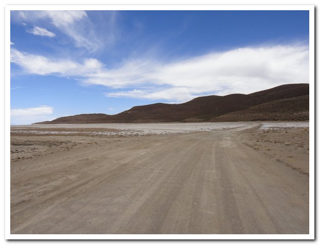 Des fois il faut traverser un bout de salar et c’est plus confortable que la tôle ondulée ou le sable…