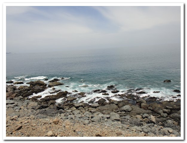 J’eusse aimé vous dire que le ciel était d’un bleu électrique, que les vagues furieuses partaient à l’assaut de récifs ciselés, ourlés de blanc par le guano des oiseaux, non, la mer était d’huile et le ciel blanc laiteux …