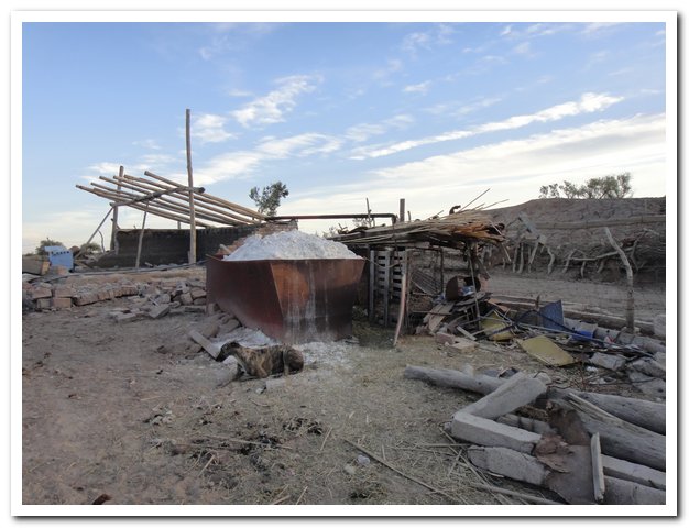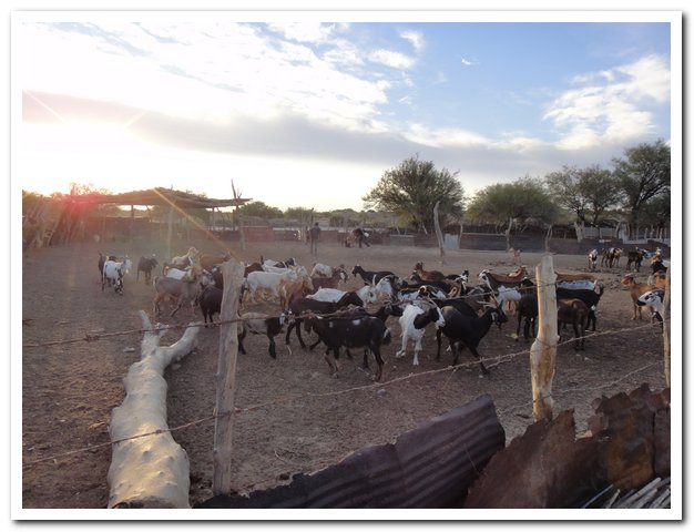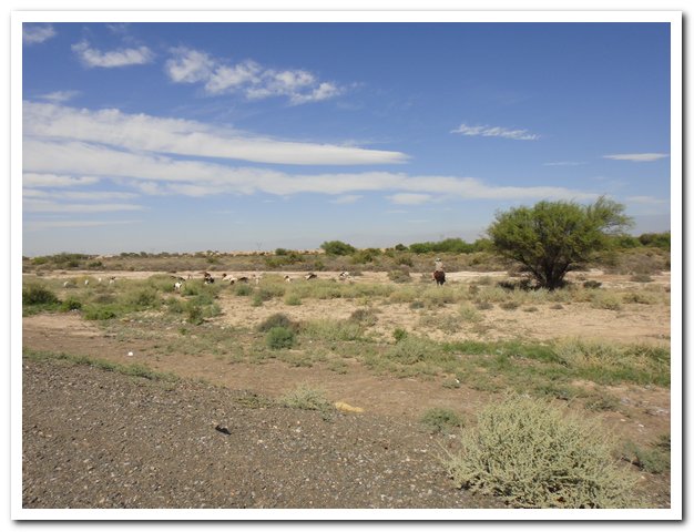 Alors ils me racontent leur vie, l’un a 23 ans l’autre a 27, ils travaillent une semaine puis se reposent une semaine, deux autres prennent le relai. Si j’ai bien compris ils ne sont pas employés mais propriétaires, ils ont une trentaine de chèvres, deux chevaux qui leur servent à récupérer les chèvres quand elles sont parties trop loin. Ici difficile de circuler à pied, il y a trop d’épines. Et tous ces matériaux ? C’est de la récupération pour améliorer la bergerie. Ils cuisinent dehors au feu de bois, en général se font de la soupe et des fois aussi des pommes de terre avec des oignons. Comment ils occupent leur journée en dehors des chèvres ? Il y a toujours quelque chose à faire, le ramassage du bois, demain ils vont faire un auvent pour se protéger du soleil. Ici ni eau courante ni électricité. De l’eau dans des bidons. Les cinq chiens sont nourris au lait de chèvre. Ils vivent de la vente des chèvres, le lait c’est pour leur consommation personnelle. Le plus jeune raconte qu’il a vécu 5 ans à Mendoza, que beaucoup de ses amis sont morts, les armes là-bas sont nombreuses. Entre nous il y a quand même beaucoup de gène, j’ai peur de les gêner et réciproquement.