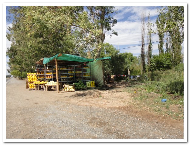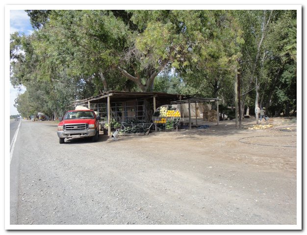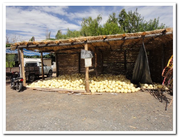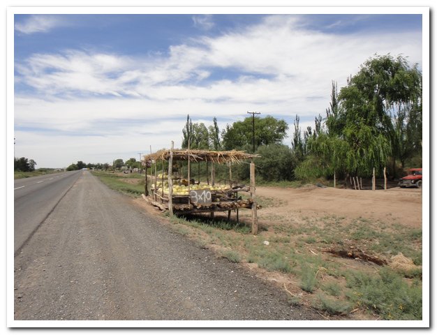 10Km après mon départ plusieurs stands de vente de melons se succèdent, je suis rassurée, je me dis la région est habitée, je ne vais plus avoir mon problème d’eau et de ravitaillement, erreur, erreur, erreur, après il n’y a RIEN