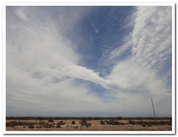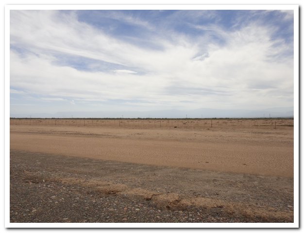 Je vais me faire désinfecter, oui c’est en fin d’après-midi, je suis nase, avec ce vent, la circulation, la chaleur et finalement ce point sur la carte qui n’était qu’un point sans rien… Arrive un espèce de contrôle, les véhicules dans le même sens que moi sont tous arrêtés, la personne qui est là dit quelque chose, apparemment ils ne présentent pas leurs papiers, je ne comprends pas bien ce qui se passe, j’essaie de savoir où on est et quand je vais trouver un endroit où me poser, l’homme fait partie de ces gens qui ont avalé leur sourire à la naissance, à part on est à Mendoza (il reste quand même 50 ou