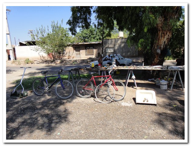 Bilan : de super chaussures ( j’en ai déjà usé 3 paires), de la colle pour réparer une de mes sacoches qui est carrément éventrée (achetée à Carrefour la colle). On trouve pas mal de choses à Mendoza, plus qu’ailleurs, mais il ne faut pas rêver, pas de quoi renouveler un équipement… J’ai quand même vu un pantalon duvet, mais il faut une mule pour le porter…