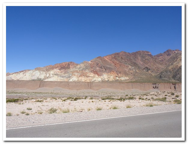 N’ayant pas fait de raft (une fois dans ma vie m’a suffit…), je ne suis pas saoule et arrive sans encombre à Uspallata. Je ne m’arrête pas dans les aires de chaînage, ni ne prends de forfait de ski, oui, je n’ai plus de temps à perdre si je veux arriver à Ushuaïa (au fait ici ils disent, et c’est dans leur