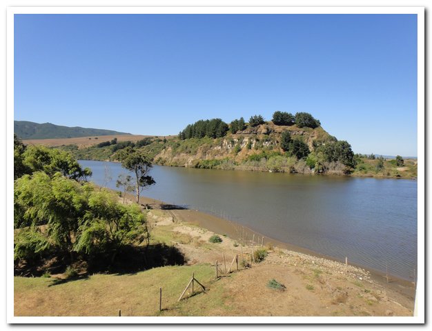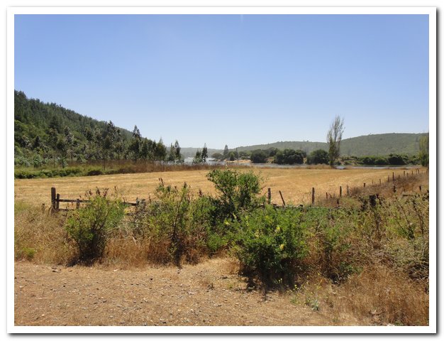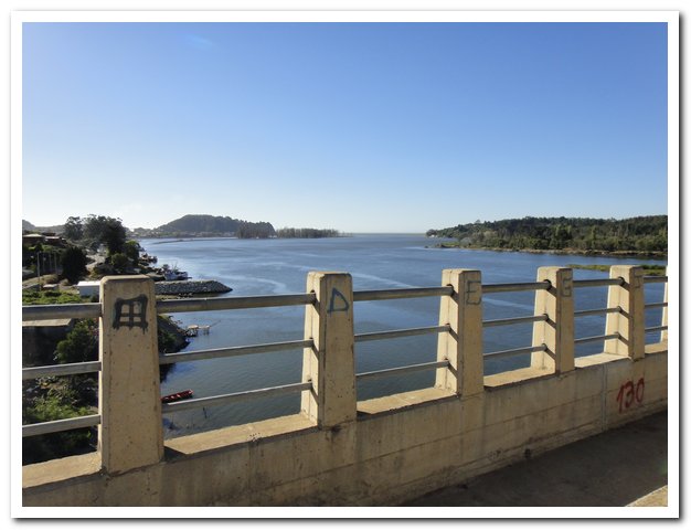 A Constitucion Tu as traversé le rio Maule. Une région bien irriguée on dirait. des cultures et des vignes sans doute ? Toujours un ciel bleu d’Azur.