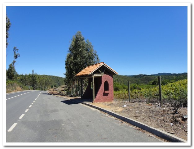 Des abris bus tout neufs ou des fois vieux où la cyclo elle trouve que c’est bien pratique de pique-niquer ( à l’abri du vent et du soleil, de la place devant pour poser son vélo, un banc, un toit, vous allez voir qu’un de ces jours elle va y bivouaquer…)