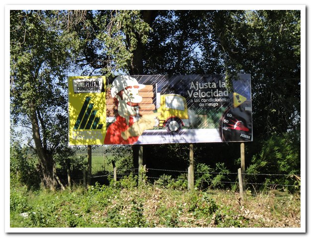 Les dangereux sont les camions tueurs qui d’ailleurs m’intriguent, ils sont fermés à l’arrière par une grille, mais qu’est-ce que Nacimiento ingurgite comme cela ? Et puis j’ai l’explication, car un de ces engins s’est trompé de sens : il est plein de copeaux de bois… Des copeaux il y en a d’ailleurs partout, je fais très attention de ne pas rouler sur une écharde…