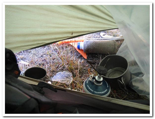 Le matin tout se passe normalement, décongelage de l’eau, c’est vrai que dormir au col expose à des températures négatives mais à moins d’humidité…
