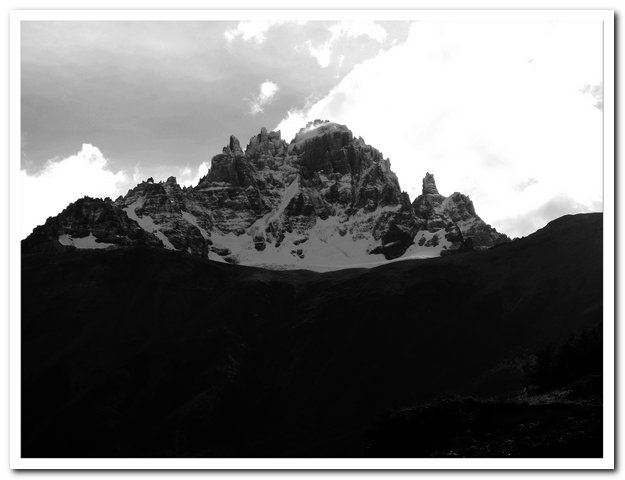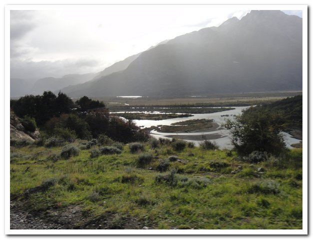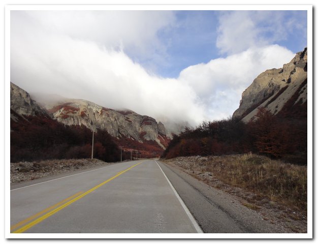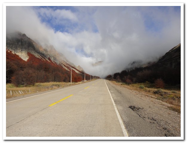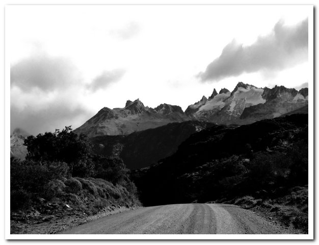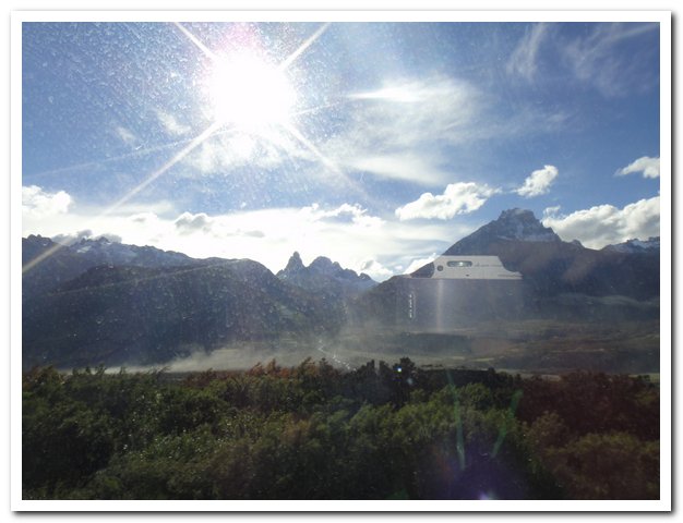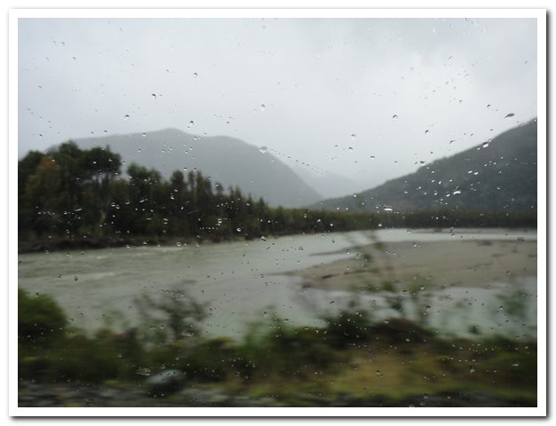 Tu as bien fait d’accepter l’aide du bus. Cette piste, avec le vent, la pluie, et les pics acérés des montagnes donnent un aspect fantastique, mais inquiétant. Il était plus sécurisant d’être assise dans le bus. Pour une fois, je sais que tu n’aimes pas, mais il faut aussi savoir être raisonnable.