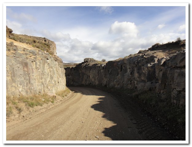 L’hôtelière m’a indiqué un camping à 10 km, mais je veux aller plus loin… Je m’engage dans un espèce de canyon et là le vent qui était fou devient furieux…
