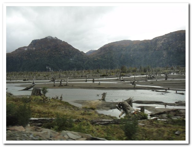 Arrivé à Puerto Rio Tranquillo, mon chauffeur s’arrêete chez son père, il me dit qu’il tient un camping, mais moi je veux dormir dans une hosteria, pas de problème, il fait aussi « alojemiento » (un lit dégagé à la hâte au milieu d’un tas de bordel), je ne peux refuser… Le feu ronffle, mes affaires vont sécher, la douche est chaude, sans être reluisant de propreté l’endroit n’est pas répugnant, je vais avoir droit à une douche chaude, au « onces », à de la viande et… Une cour effrénée de mon hôte, il ira jusqu’à frapper deux fois à ce qui me tient lieu de chambre et me démontrer le matin qu’il repasse seul ses chemises (à merveille d’ailleurs), mais il ne me plait pas et une prison même dorée n’est pas pour moi…