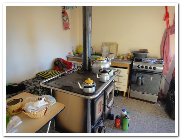 Là vous avez la cuisinière typique des patagoniens chiliens avec autour des bancs pour profiter de la chaleur, c’est génial…