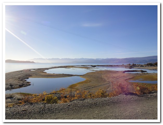 Je vais louper un super bel endroit , la super Suisse, sommets enneigés, reflets dans le lac, mais coincée entre deux cannes à pêches à lunettes, il n’y aura pas de photos… Arrivée à Puerto Bertrand mes sauveteurs prennent contact avec les deux jeunes guides de montagne, accompagnateurs de VTT qui vont venir me chercher, il vont mal réparer le porte-bagage, ça va casser en un jour, ils vont badigeonner mon vélo d’huile, je vais passer plusieurs heures à extraire le magma sable- gravier qui s’est mis partout, mais, mais je vais beaucoup parler avec eux et ils vont m’aider dans ma démarche de comment continuer mon voyage, en clair je vais jusque qu’à la Caleta Tortel, Villa O’Higgins si on ne peut traverser le lac ne vaut pas le coup, je repasse en Argentine par le paso Roballos, et après je fais fis de tout ce que l’on me raconte, et je vais jour après jour et à chaque jour suffit sa peine, et aujourd’hui, 21 mai, c’est ce que je fais et c’est très bien. Avec eux je vais faire le ménage de tout ce dont on m’a encombrée pour le vélo, les pneux chiliens, out, les milliers de chambre à air, out, le démonte-chaine suit le même chemin, le redresse-rayon aussi, même les rayons y passent, je gagne deux kilos et mon esprit s’allège… C’est quoi cette diabolisation de la carretera australe ? C’est tout sauf un désert, le désert je vais le rencontrer après, mais ouf je ne le sais pas…
