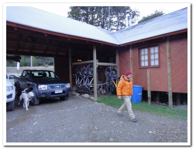 Je ne peux franchir l’espèce de pont qui permet de sortir du lodge, il est en rondins givrés et montant, même le chien viendra m’aider…