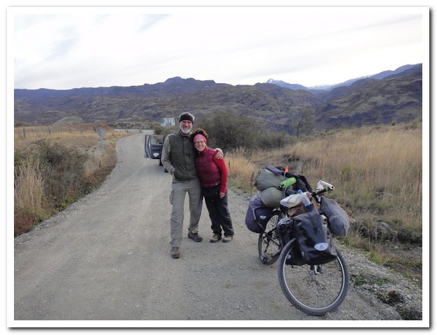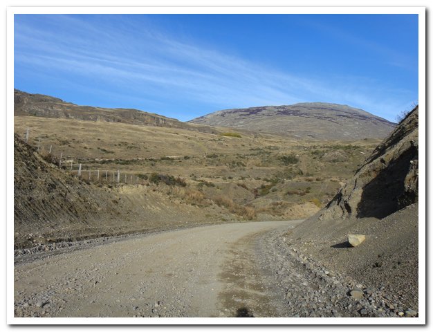 Et je vais monter beaucoup, y compris du poussage torture, le premier sur quelques kilomètres, le deuxième un peu plus court, non, pas de photos dans les poussages torture… Un couple de français installé au Chili passe et me propose leur aide, ok si ils m’aident à pousser, non ils veulent bien m’emmener plus loin mais pas pousser… Je les croiserai à leur retour de week-end, ils s’inquièteront de savoir si j’ai besoin de quelque chose, oui, j’ai besoin d’eau, ils me donnent ce qu’ils peuvent, c’est à dire peu. Je pensais arriver à Cochrane aujourd’hui mais vu les montées je vais y renoncer…