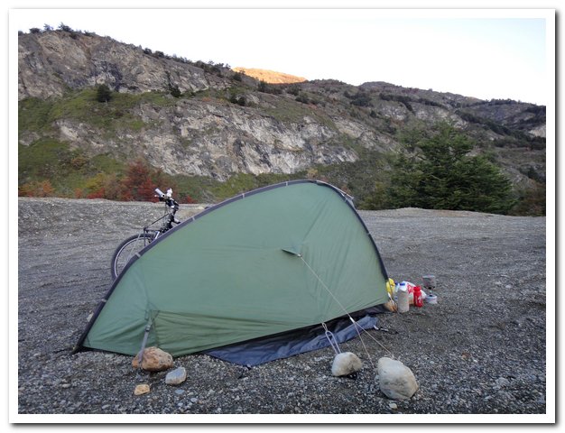 Je galère un peu pour trouver une aire de bivouac qui me convienne, je pose ma tente dans un espèce de gravier, écrivant cet article en décalé je ne sais pourquoi j’ai si bien arrimé la tente alors que dans mes notes j’ai écrit que le soir je me faisais mon petit feu de camp.