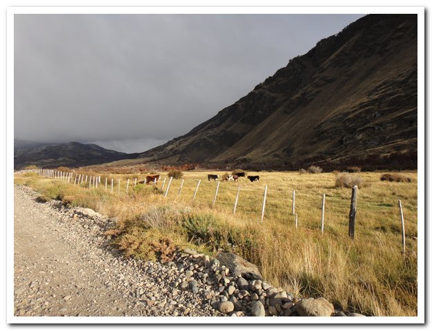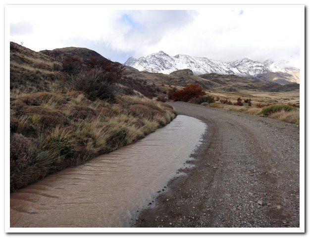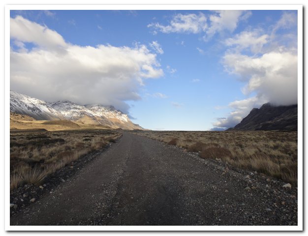 Je réfléchis à la carretera austral, pourquoi ne m’y suis-je pas sentie bien ? D’abord je pense que j’ai été un peu malade et puis je pense que tout le monde m’a stressée en me disant ça y est tu es arrivée alors que je n’avançais pas, et tout le monde aussi m’a stressée en me disant que jamais je ne passerai, Ushuaïa en hiver ? Impossible, alors j’ai essayé d’aller vite et je ne peux pas, la piste ce n’est vraiment pas mon truc et pourtant, là je suis sur une piste exécrable et je suis heureuse… Il y a aussi le climat froid et humide, très dur pour moi… Et aussi je pense que je me suis sentie un peu « enfermée » dans cette carretera austral, moi j’ai besoin de grands espaces, le vent me va bien, le vent, les pierres, je préfère les pierres aux arbres, c’est comme cela…